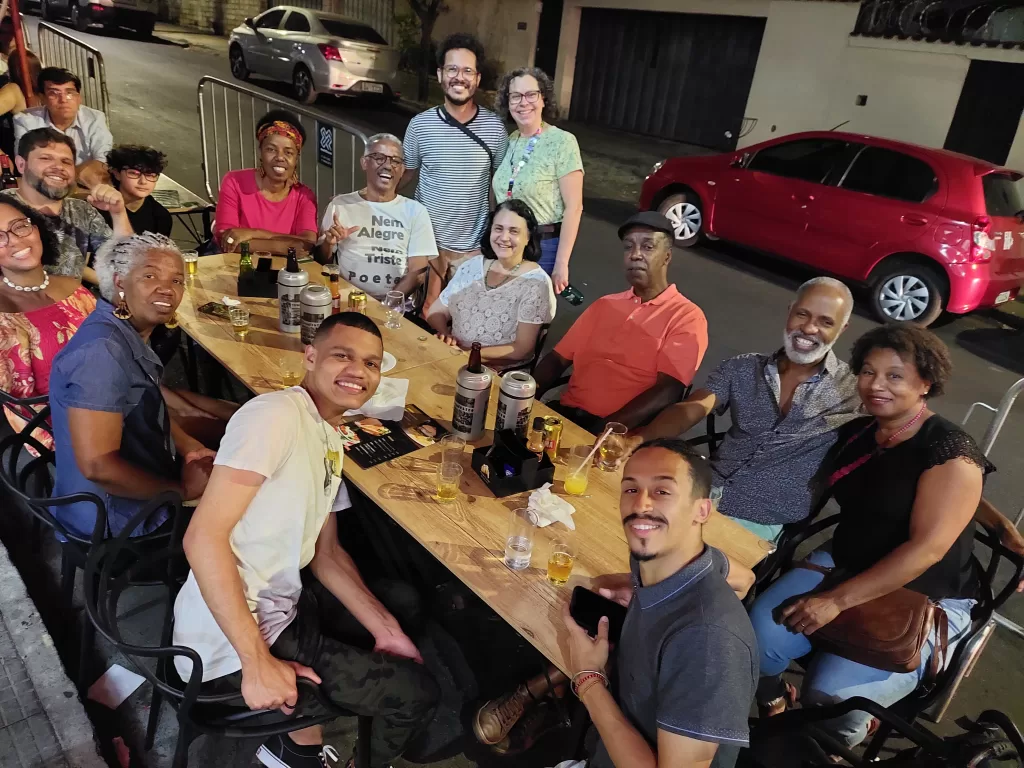 A caminhada também inclui momentos de contação de histórias sobre a vida boêmia de Belo Horizonte e sobre transformações urbanas que marcaram a região central da cidade.