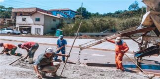 Na avenida do Contorno em Barão de Cocais, construção de passeios...