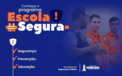 Idealizado pela Secretaria de Segurança Pública, por meio da Defesa Civil, o Programa Escola Segura, instituído pela Lei Municipal nº 3.647, de 13 de dezembro de 2022, tem percorrido as escolas de Mariana gerando impactos positivos.