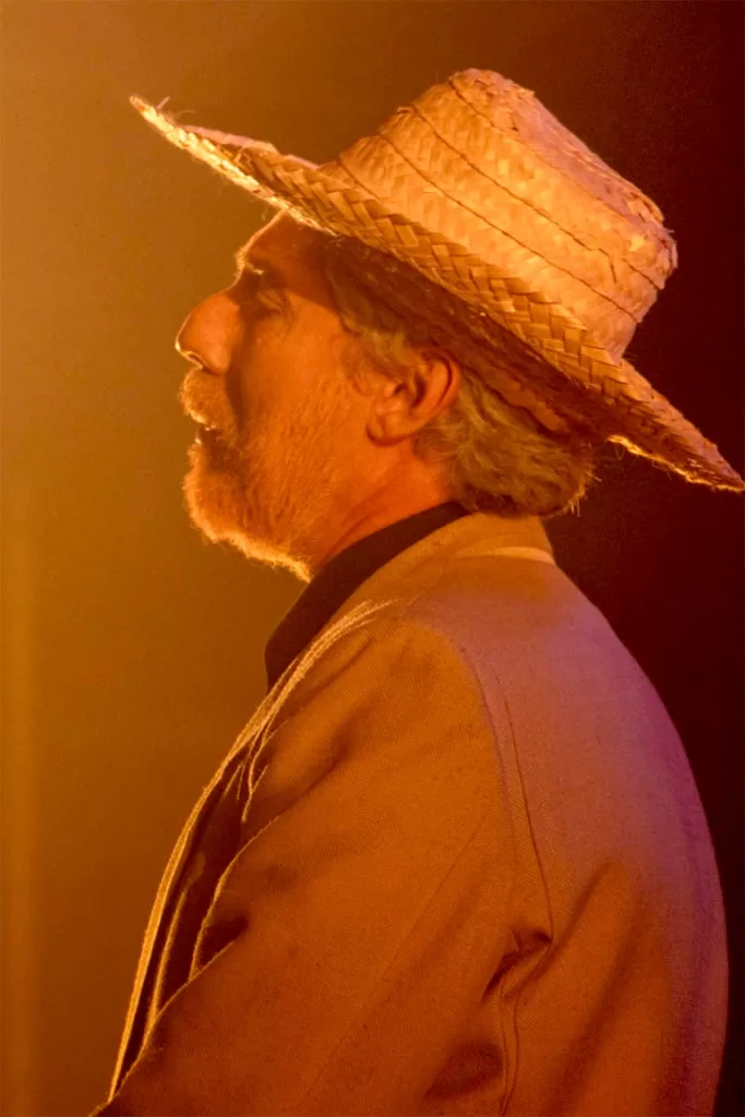 Evitando uma abordagem tradicional biográfica, o espetáculo oferece uma experiência profunda, sensível e estética, onde palavra, silêncio e presença se entrelaçam com beleza. A iluminação, a cargo de Cássio Pinheiro, contribui para criar uma atmosfera íntima e expressiva, realçando o universo subjetivo do protagonista.