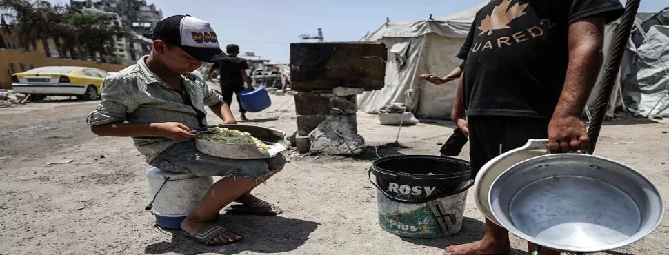 Palestinos aguardam por comida na Faixa de Gaza. Foto: Gettyimages.ru / Ali Jadallah/Anadolu