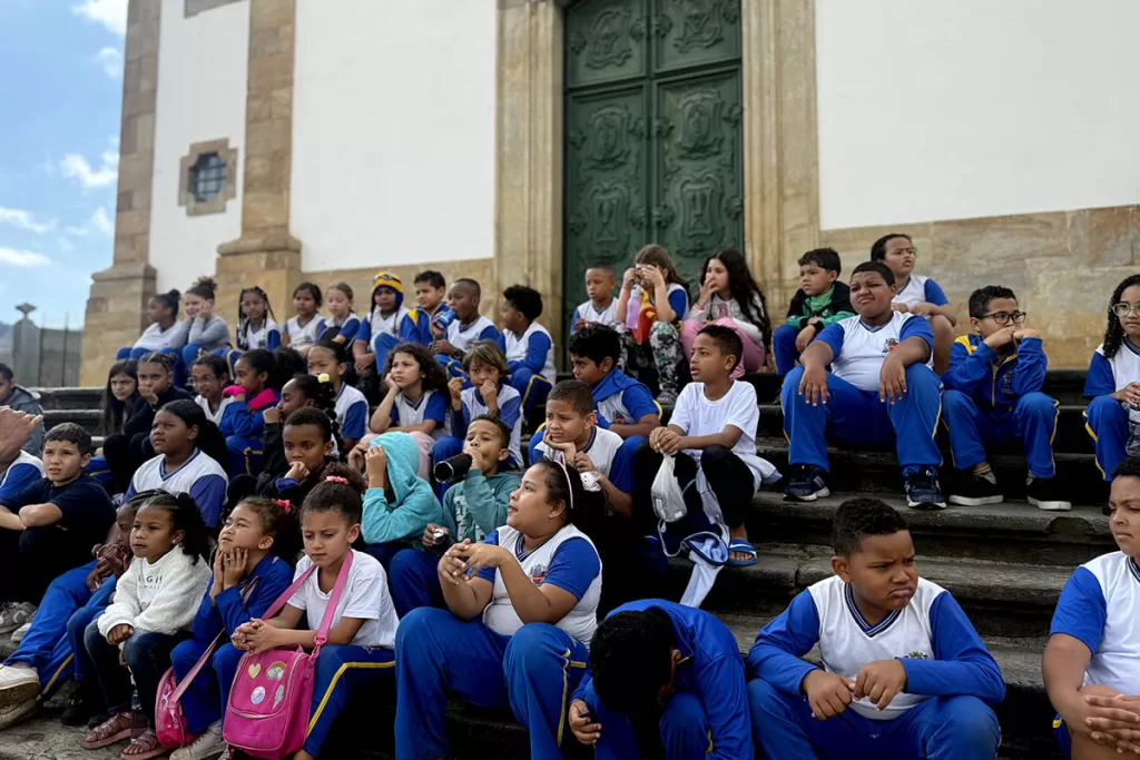 As atividades de educação patrimonial nas escolas municipais contribuíram para as discussões levantadas pelos estudantes, como a simbologia do pelourinho na Praça Minas Gerais.