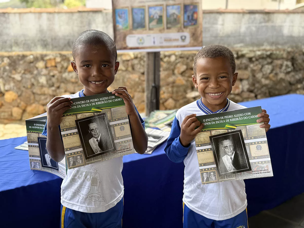 Os alunos das escolas municipal e estadual do distrito de Bandeirantes, em Mariana, tiveram a oportunidade de participar do lançamento do livro “O encontro de Pedro Aleixo com os alunos da Escola de Ribeirão do Carmo”, escrito por Luciano Guimarães e Andreia Donadon.