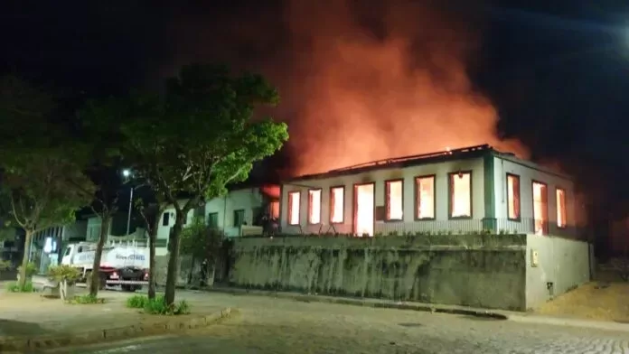 Foram necessários cerca de 20 mil litros de água para conter as chamas, que consumiram toda a mobília do saguão principal, documentos e arquivos da secretaria, além de comprometer a estrutura do telhado.