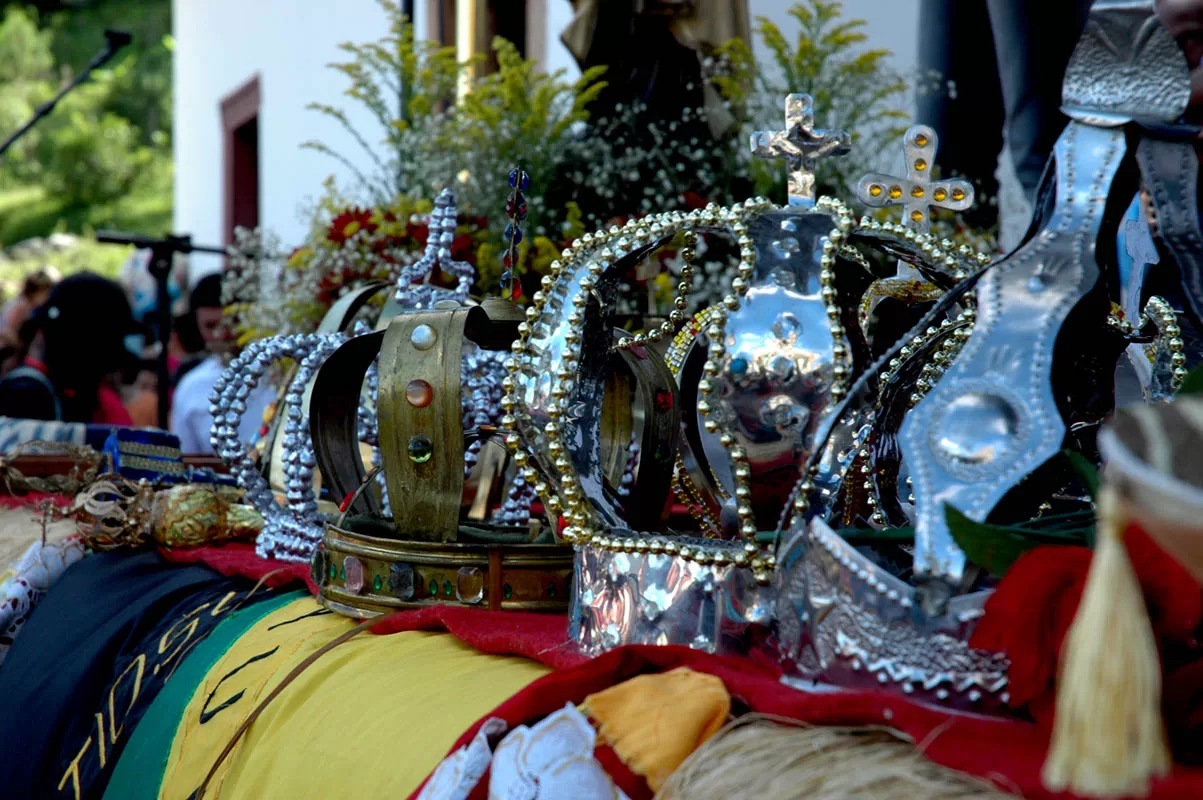 As ruas íngremes da cidade se enchem de cores e batuques, com as apresentações das guardas de congado vindas de várias regiões de Minas Gerais.