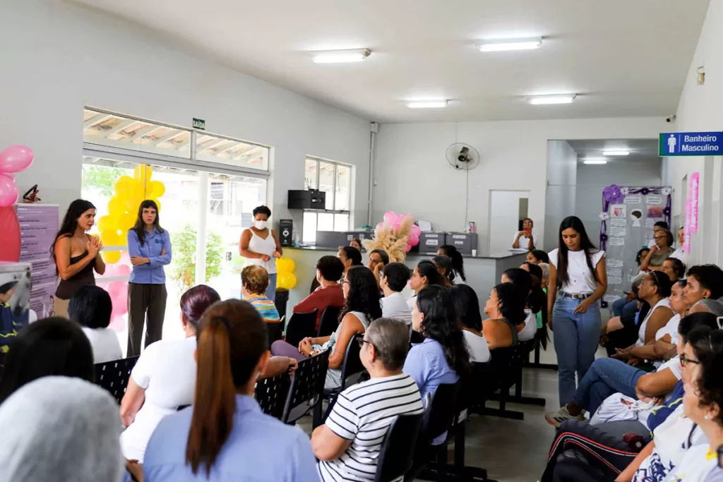 Na manhã seguinte, a UBS São Vicente/Campestre sediou a palestra “Reconhecimento e Protagonismo Feminino: Saúde, Direitos e Conquistas”, realizada em parceria com o CREAS.